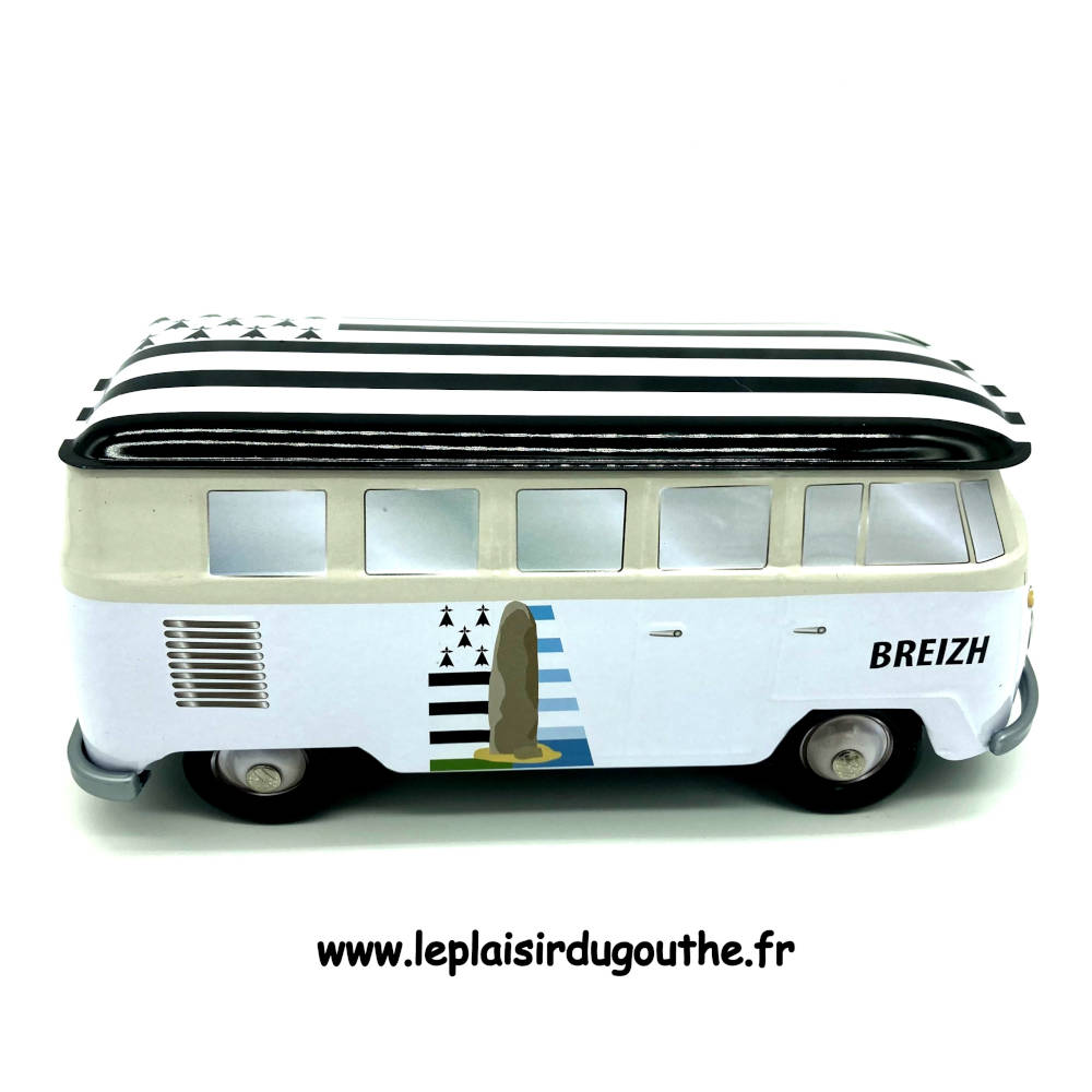 Le Combi Volkswagen Bretagne est un boite en fer-blanc de la marque Volkswagen*. Le véhicule a des roues mobiles ainsi qu’un couvercle amovible. *Produit sous licence Volkswagen, tous droits réservés.